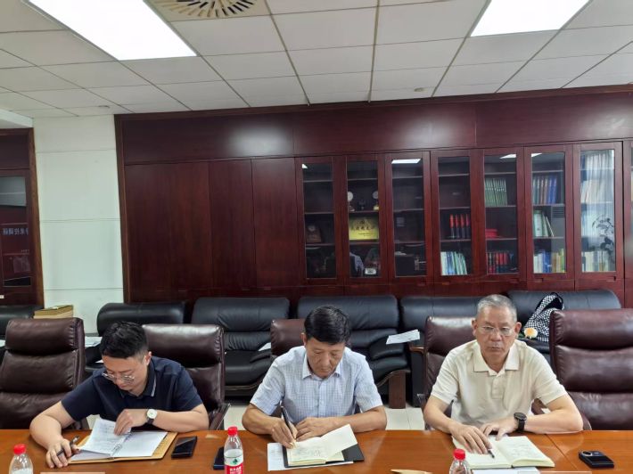2025 年 7 月 1 日,常德市林业局四级调研员易金生率队到访我校,围绕产学研合作、科技成果转化及竹产业发展展开深度考察交流。我校成果转化与知识产权中心夏换主任、李晴副主任、伍希志副教授等6位代表出席座谈会。