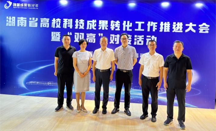 7月17日,湖南省高校科技成果转化工作推进大会暨“双高”对接活动在株洲举行。副省长曹志强、省科学技术厅党组书记李志坚、株洲市委书记曹慧泉等领导出席。中科院、中南大学等省内外高新区(高新区内企业)、高校以及相关企业、机构代表等300余人参加活动。会上发布了全省高校科技成果转化指数、全省企业技术需求;8个全省高新区(高新区内企业)与高校“双高”对接项目现场签约;高校、园区、企业、机构代表分别作交流发言。我校成果转化中心周波副主任、前沿交叉学科学院张贵教授、易积政副教授,电物学院周凯副教授和林学院李红庆副教授参加了此次对接活动。