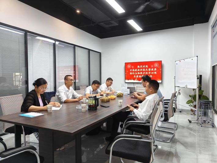 陈铭浩董事长介绍了公司的基本情况和个人的创业经历。李广军主任介绍了学校的科技成果转化和知识产权情况,并高度赞扬校友陈铭浩的创业成就,双方就知识产权服务和产学研合作项目开拓方面进行了探讨。