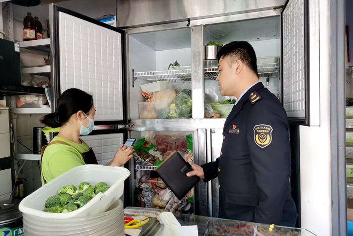 按照学校《关于切实做好近期学校安全工作的通知》要求以及落实闫文德副校长对经营性门面安全工作“打好安全工作翻身仗”的指示,5月9日,邀请天心区市场监管局文源市场监管所所长童俊军对学校餐饮门面进行食品安全工作检查,童俊军指出了食品采购台账登记、食品加工操作卫生、食品材料管理储藏等方面问题,提出了针对性的整改意见,责令门面安全责任人限期整改。