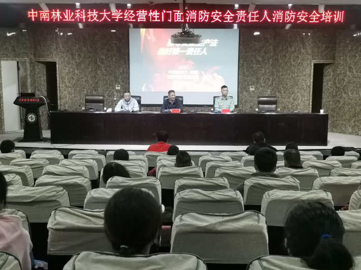 10月27日上午,公司在学校东园图书馆报告厅举办学校经营性门面(场地)消防安全责任人消防安全培训会,保卫处张先勇处长,湖南省普消消防安全宣传服务中心杨东升教官出席,经营性门面(场地)消防安全责任人共计200余人参加。培训会由公司副总经理谢坤语主持。