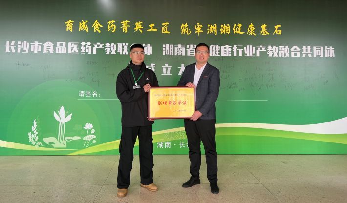 2025年10月25日,湖南省大健康行业产教融合共同体成立大会在湖南食品药品职业学院举行,我校作为副理事长单位参与了本次大会。大健康产业是“4✖4”湖南省现代化产业体系中新兴产业布局的具体领域,涵盖药品、食品、医疗器械以及化妆品等方向。中南林业科技大学在人才培养、科学研究、成果转化等方向与大健康产业高度契合,特别是林下经济作物的培育与加工,为药品、食品以及化妆品提供了丰富的原料。