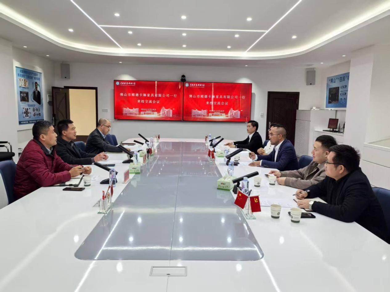 12月10日下午,我校与佛山市顺德区卡琳家具有限公司校企合作座谈会在崇德楼803会议室成功召开。本次会议以"深化产教融合、共促行业升级"为主题,旨在搭建校企合作桥梁,推动家具产业创新发展与人才培养深度融合。