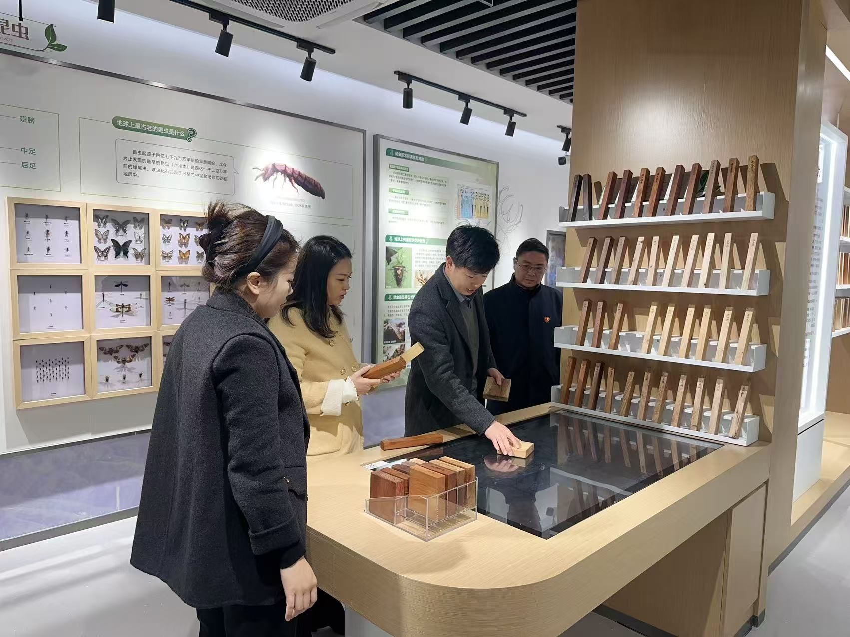 随后在学校林学院吴磊副教授的带领下,文杰一行参观了林学院自然博物馆展厅。在自然博物馆,嘉宾们近距离观摩了珍稀竹木及动物标本、竹木生长周期展示及科研实验成果,对学校在竹木资源收集与研究方面的实力赞叹不已;