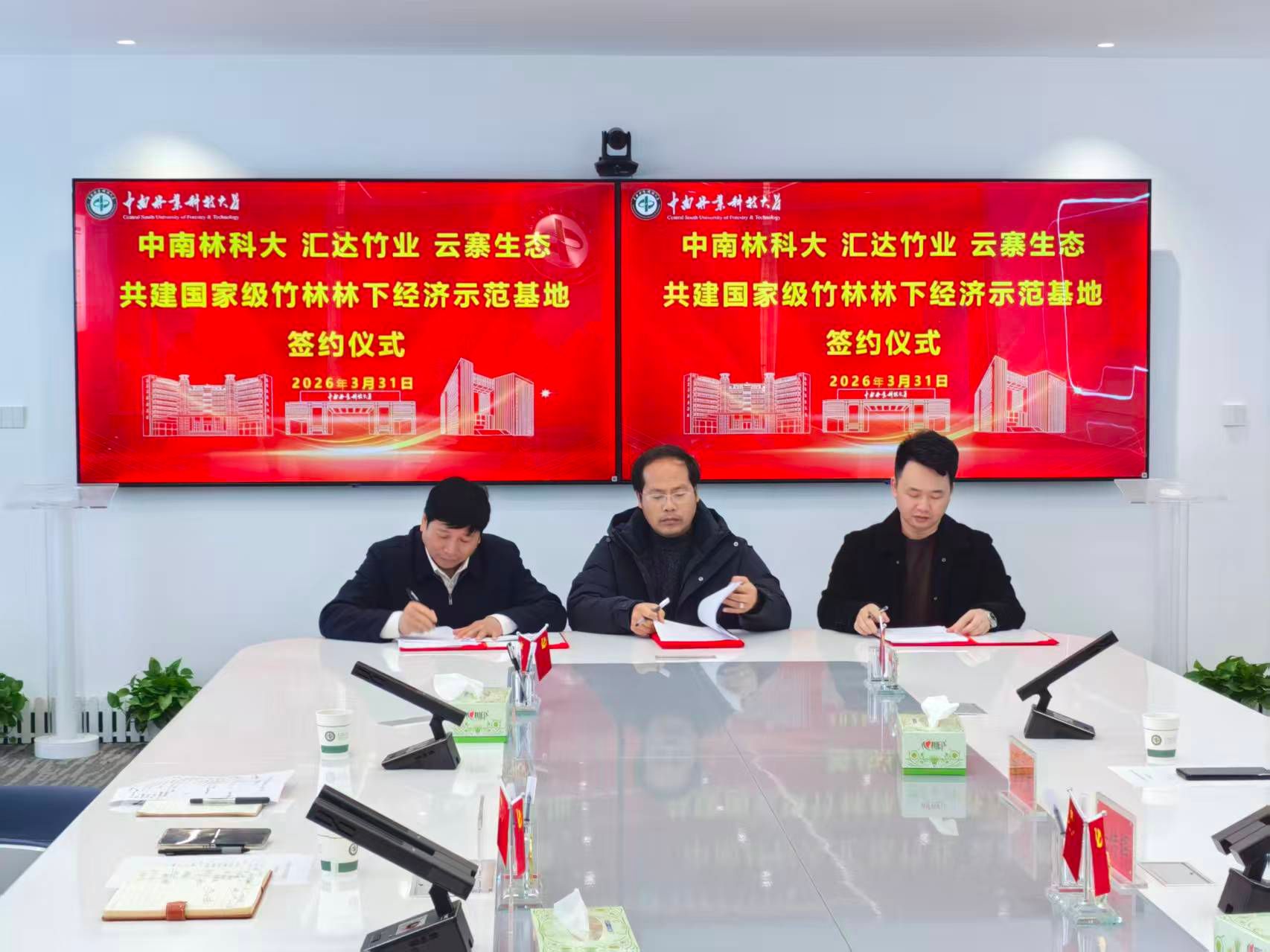3月31日上午,中南林业科技大学、会同汇达竹业有限公司、湖南云寨生态农业有限公司三方共建竹林林下经济国家示范基地签约仪式,在崇德楼803会议室顺利举行。仪式由成果转化与知识产权中心高级技术经理人李明主持,校企相关代表共同见证这一重要时刻。