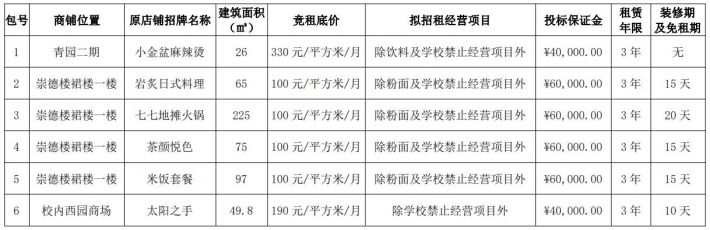 1.1项目名称:中南林业科技大学青园二期、崇德楼裙楼一楼、校内西园商场商铺招租