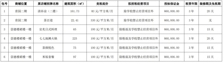 1.1项目名称:中南林业科技大学青园二期、崇德楼商铺公开竞价招租。
