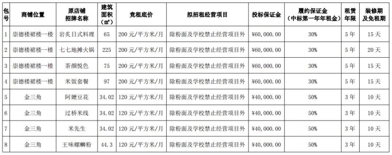 1.1项目名称:中南林业科技大学崇德楼裙楼、金三角商铺招租。