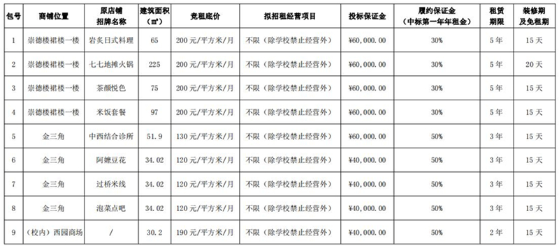 1.1项目名称:中南林业科技大学崇德楼裙楼、金三角及(校内)西园商场商铺招租。