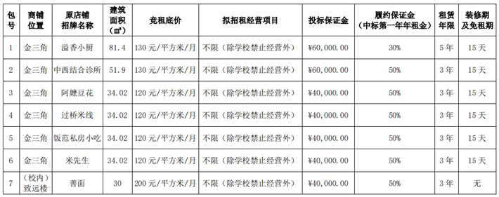 1.1项目名称:中南林业科技大学金三角、致远楼商铺招租。