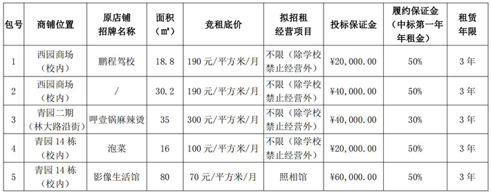 1.1项目名称:中南林业科技大学西园商场、青园二期商铺招租。