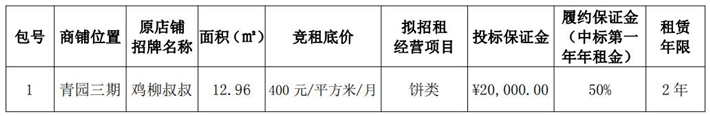 ②本项目竞租报价必须等于或高于竞租底价,否则视为无效报价;