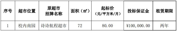 1.1项目名称:中南林业科技大学校内南园超市招租