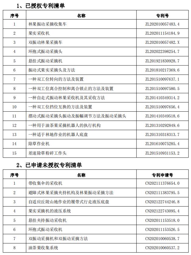 拟交易价格:首期款壹佰万元人民币(¥1000000.00),后期按技术成果相关产品销售提成:①油茶果及相关林果采收机,销售的前100台不计提成,在101台至30000台按每台提成1200元,30001台至50000台按每台提成800元,总计提满50000台后即不再提取利益;②除草机销售的前100台不计提成,在101台至30000台按每台机器提成400元,总计提满30000台后即不再提取利益。