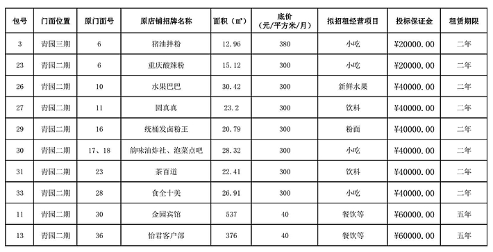 ②本项目竞租报价必须等于或高于起标价,否则视为无效报价;